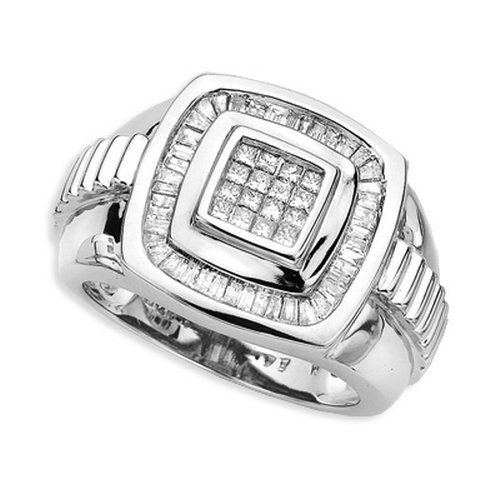 Buy 14K White Gold 1 ct. Baguette and Princess Cut Diamond Men's Ring Now