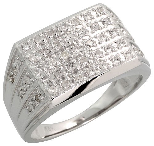 Buy 14k White Gold Rectangular Men's Diamond Ring, w/ 0.55 Carat Brilliant Cut Diamonds, 1/2" (13mm) wide, size 9 Now