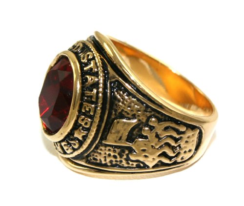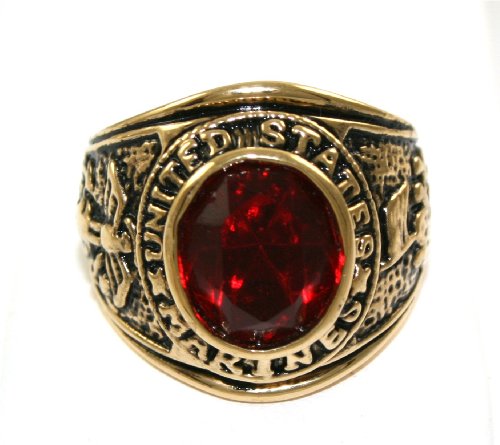 Buy MENS US Marine Military Red Ruby CZ 24k Gold Layered GL Ring ~ LIFETIME WARRANTY ~ YOU CHOOSE SIZE (93a) (9) Now