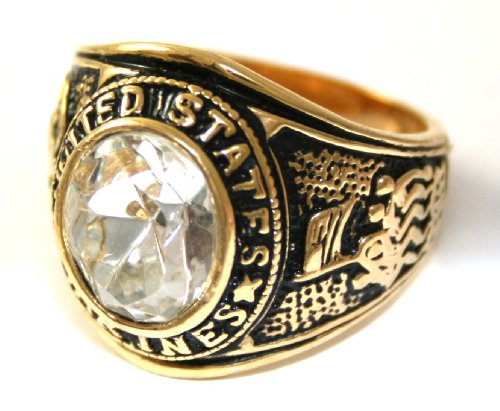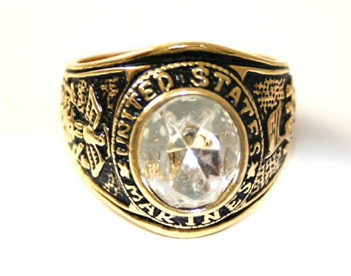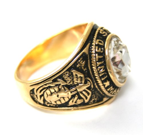 Buy MENS US Marines Military Clear Ice CZ 24k Yellow Gold Layered GL Ring ~ LIFETIME WARRANTY ~ YOU CHOOSE SIZE ~ Gift Boxed (93b), 10.5 Now