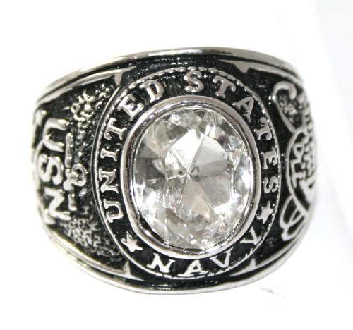 Buy MENS US Navy Military Clear Ice CZ 24k White Gold Layered GL Ring ~ LIFETIME WARRANTY ~ YOU CHOOSE SIZE ~ Gift Boxed ~ Free Shipping! Now